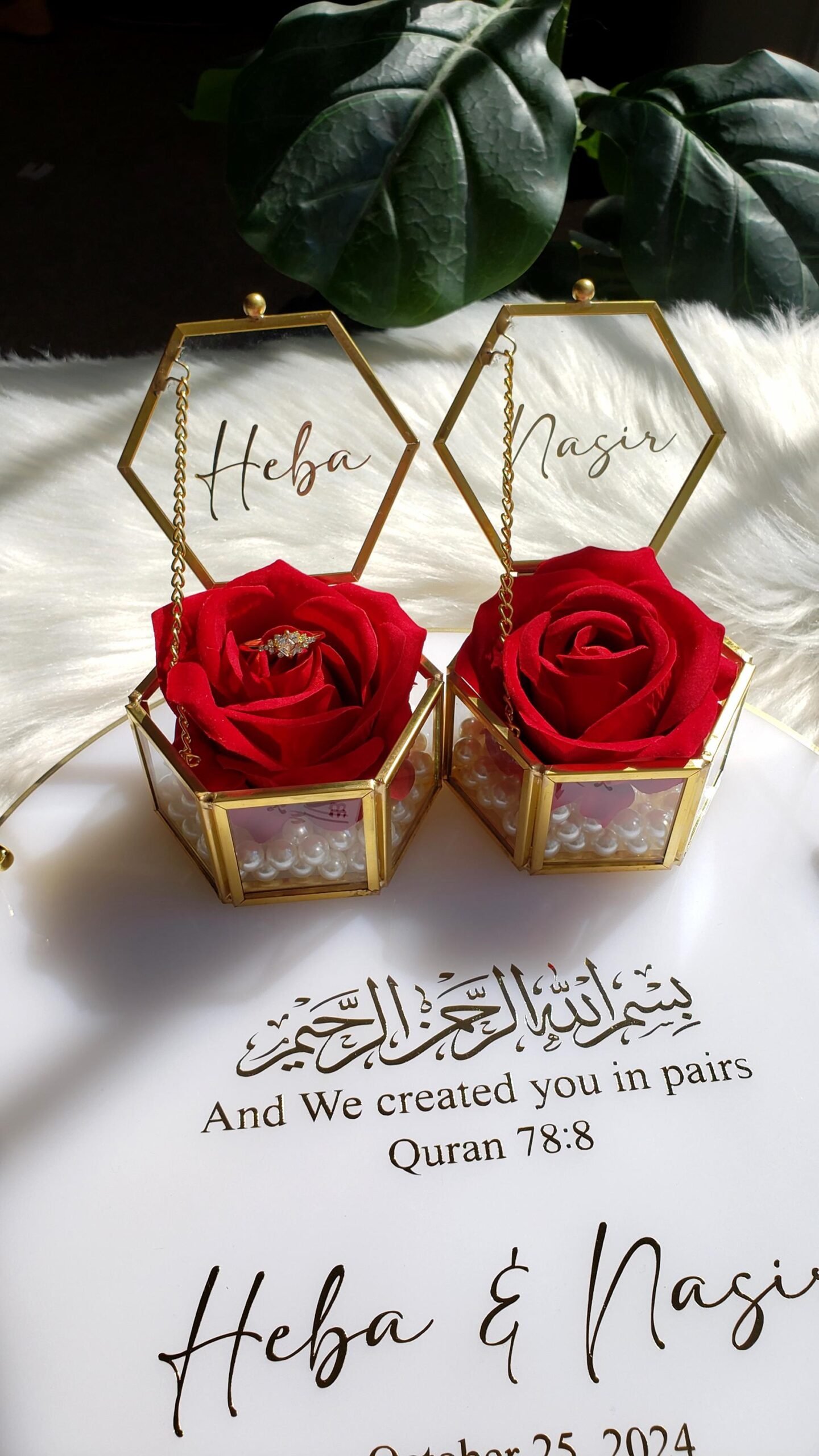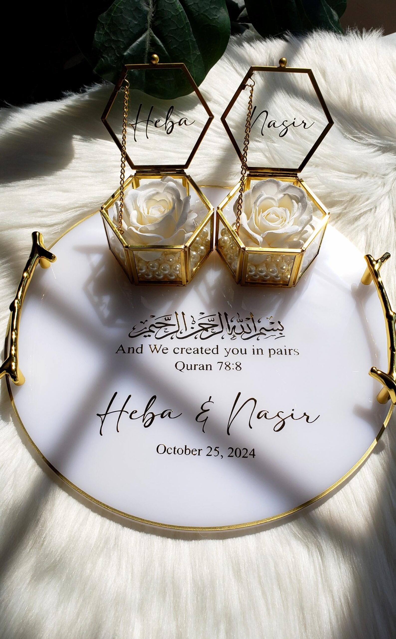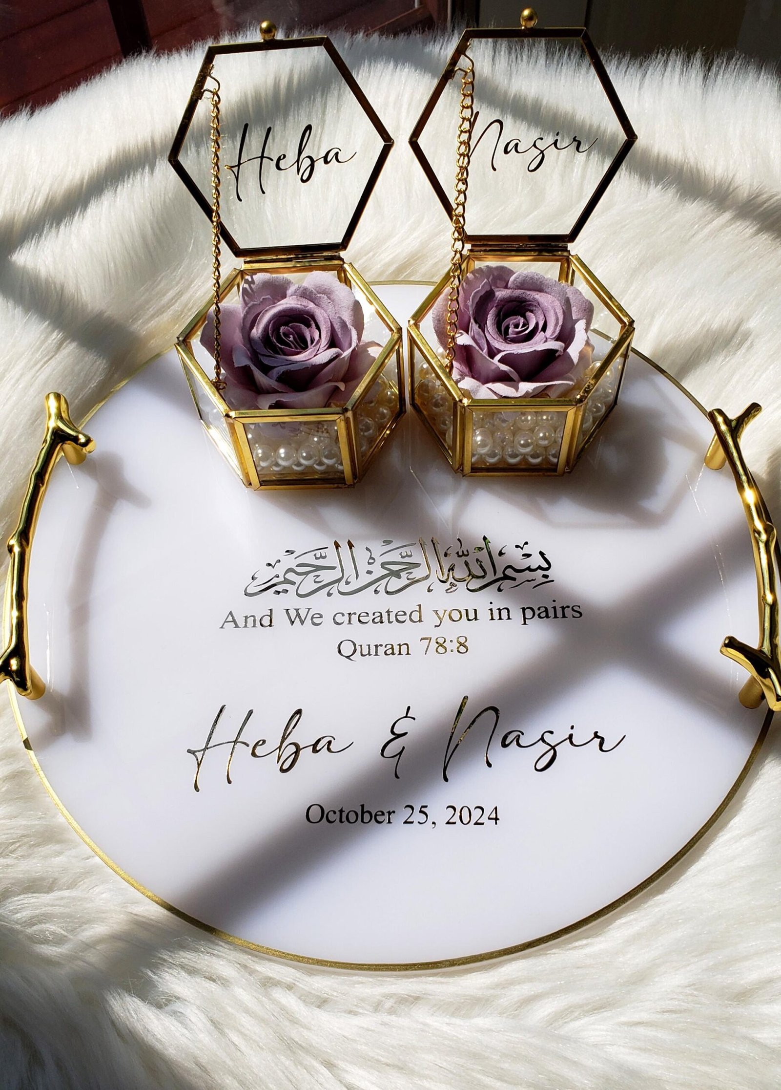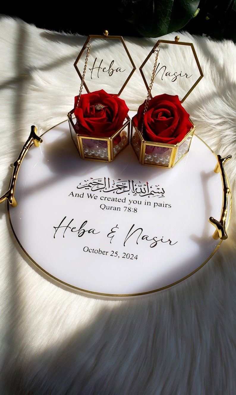 Unlike ordinary trays or boxes, this combination merges utility with beauty. The tray adds grandeur to the ceremony, while the transparent glass box frames the rings like priceless treasures. It’s the perfect blend of tradition and modern aesthetics, making it a must-have for contemporary couples.