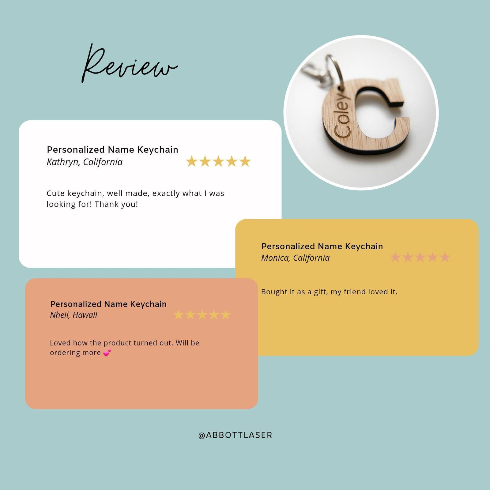 Perfect for a backpack tag or a lanyard keychain. The name can be personalized and matched with the large letter. The keychain has a clasp for easy attachment! Thank you so much for supporting our family’s small business! Your satisfaction is our number one priority, so please message us with any questions or concerns. Abbott Laser products are all designed and created in our home! We love bringing unique ideas to life, so if you have something special in mind, let us know and we’ll create a custom order that’s tailored just for you.